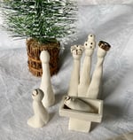 Some of the sets are glazed white and some are matte porcelain but each set has gold lustred crowns for the kings and both baby Jesus and The Virgin Mary have gold lustred halo’s.