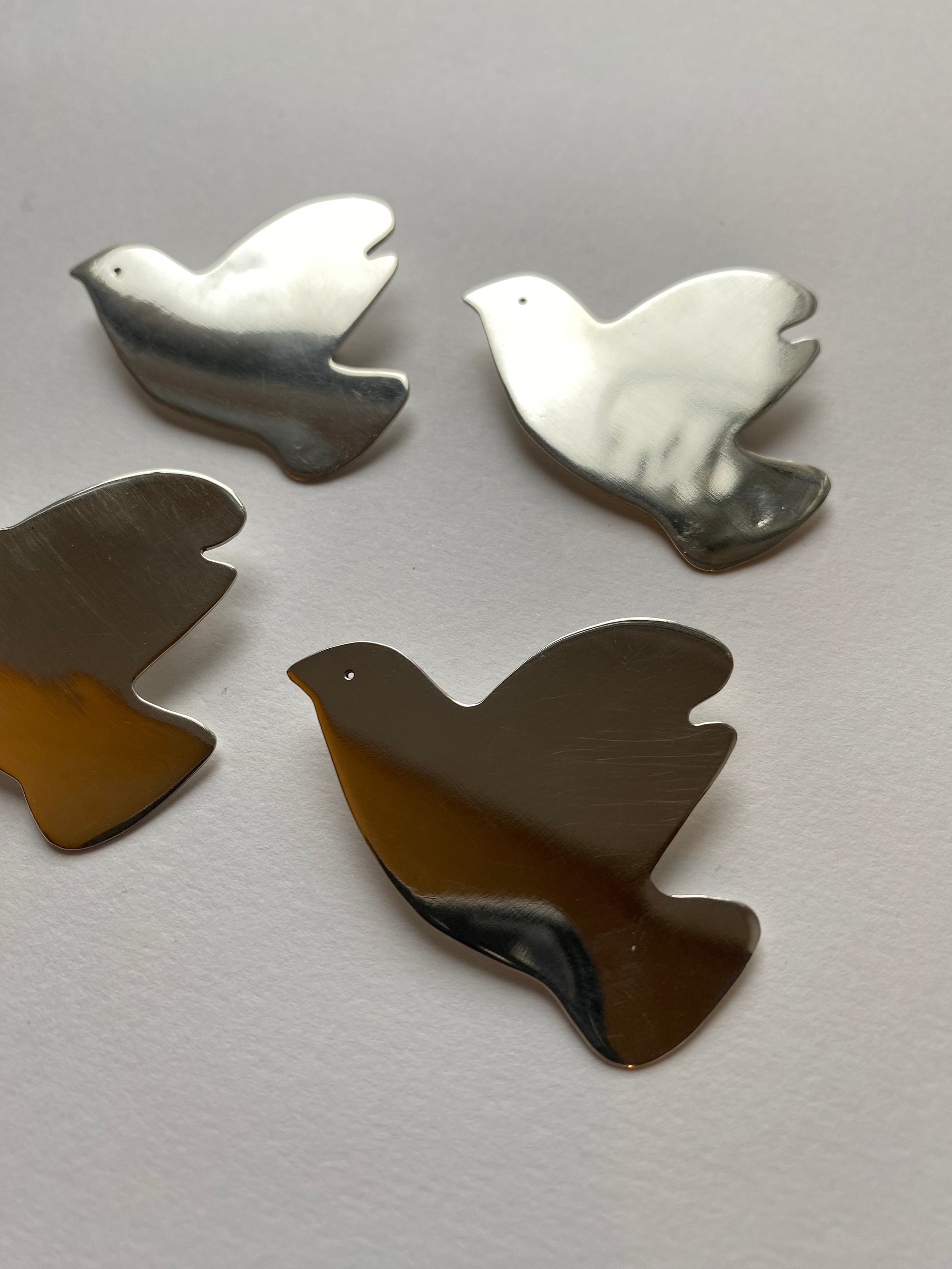 I design a limited edition brooch every Christmas and I wanted something different this year. A large solid silver dove, beautifully made and hallmarked. Designed by me and made up by the excellent Eleanor Johns in her glorious studio in Miskin. The brooch pin itself is also sterling silver.